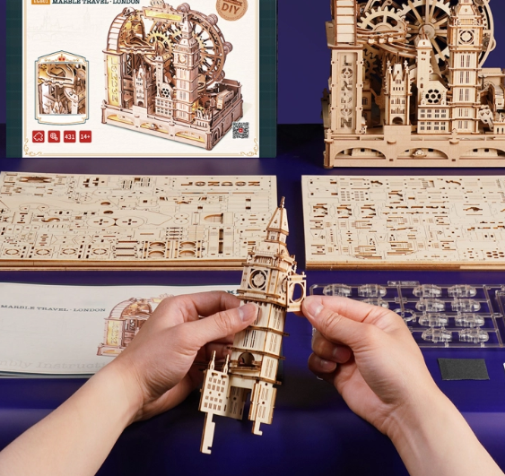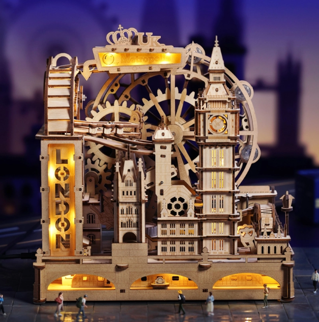 The kit makes an excellent gift for fans of construction, architecture, and marble‑run play. Finished model dimensions: approx. 8.9 × 6.1 × 9.3 in